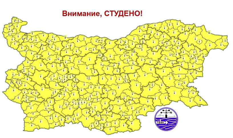 Вчера жълт код за ниски температури беше обявен в 14 области.