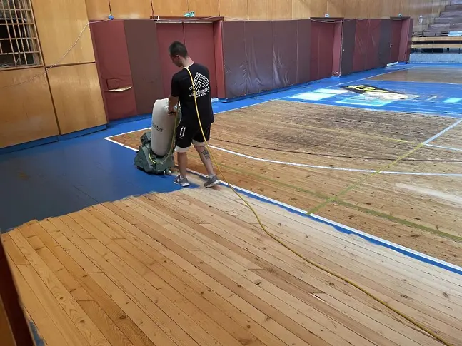 Ще бъде изциклена и лакирана, а на компрометираните местата ще бъде реновирана, като се подменят отделни елементи. Игрището е комбинирано за игра на баскетбол, волейбол, бадминтон и футбол на малки вратички, затова полетата за различните видови спорт ще бъдат разчертани, съобразно изискванията след ремонта.