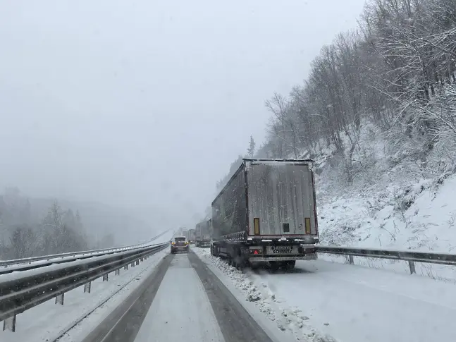 Около 2 часа скоростния път е блокиран и към момента опашките от превозни средства са километрични.